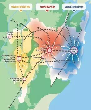 悉尼“未来三城”正在如火如荼的建设中——从东边靠海的Eastern Harbour City(东部海港城)到西北的沿河的Central River City(中部沿河城),再到西部的近山的Western Parkland City(东部空港城)。