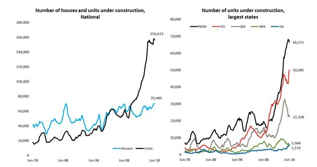 在2018年底,全国一共有227,122新住宅在建,69%定位为 “其他住宅项目”, 主要是公寓。这些公寓项目总数的3/4位于新洲(66,511)和维州(50,085)。
