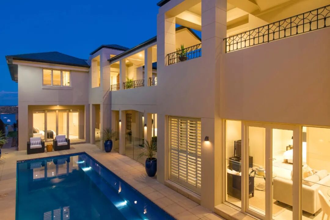 作为典型的Balmoral山坡住宅,设计师用柔软的中性色调勾勒出与海岸风景融为一体的优美外观。而步入室内,创意的布局和宏伟的生活空间真的令人叹为观止。开阔的空间让整座豪宅光线充足,绝大多数房间都可观赏极致水景。