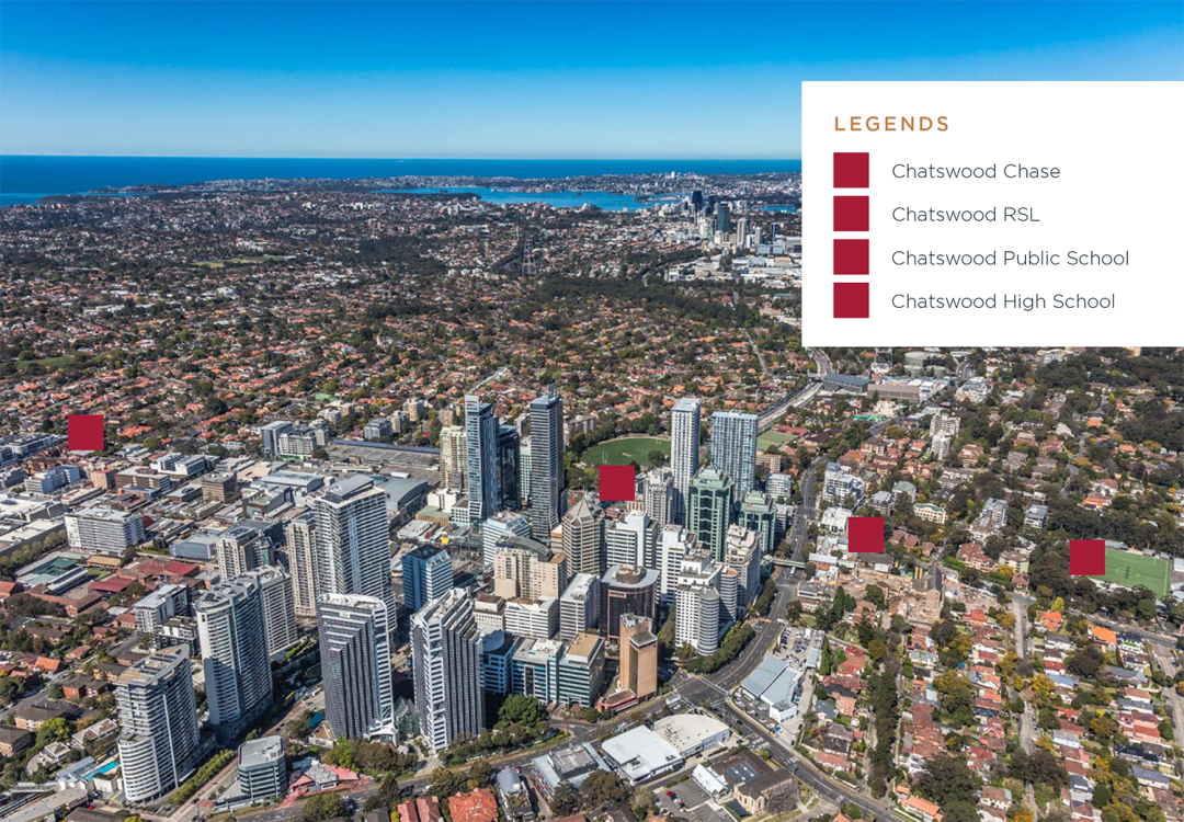 地点:物业位于Chatswood公共交通换乘处和太平洋高速公路之间,面向Victoria Avenue和 Brown street。