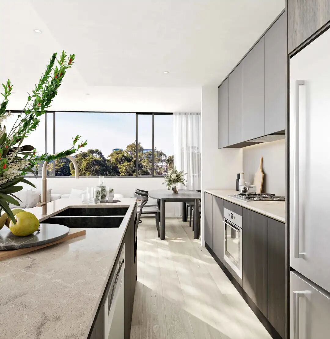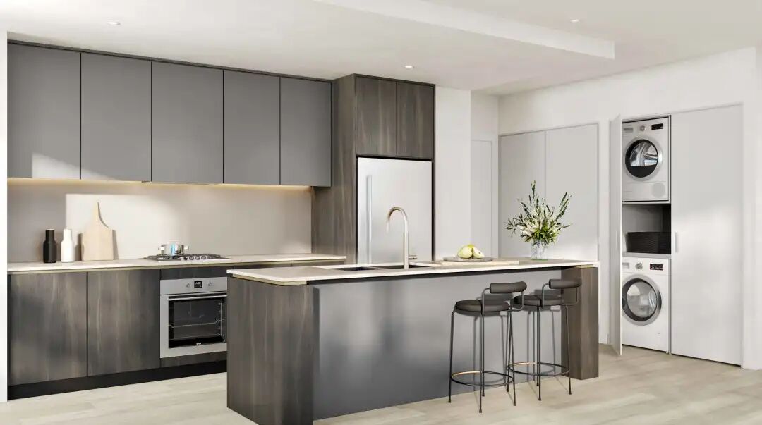 匠心独运皆在细节,Eterna的厨房采用 Caesarstone 台面、现代磨砂玻璃防溅板和意大利品牌ILVE,搭配柔软的灰橡木地板,为居住者提供一个舒适的居住环境。